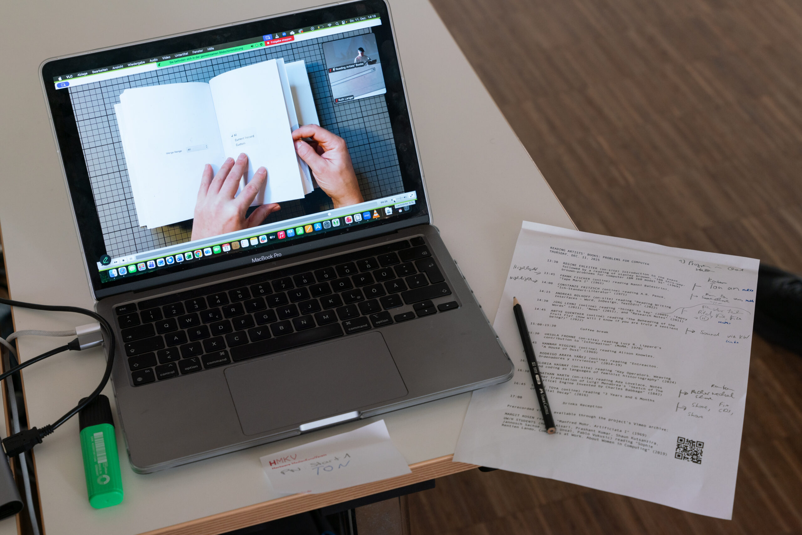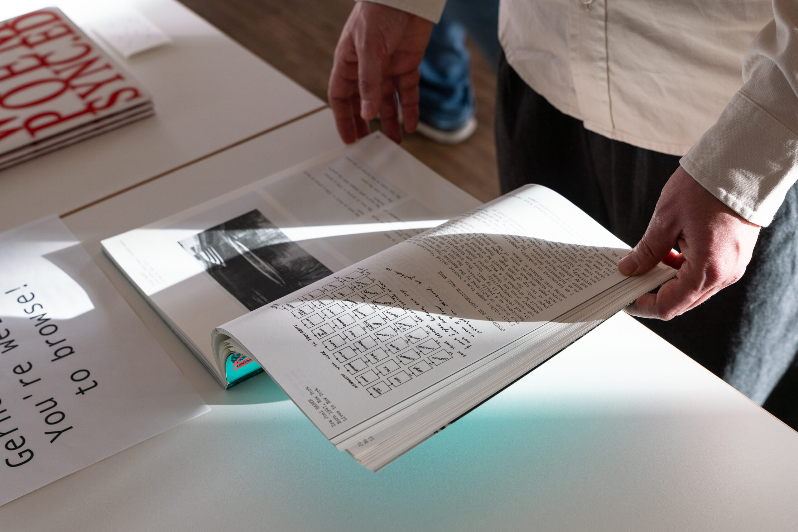 The Reading Artists’ Books series was initiated by Regine Ehleiter and Tabea Nixdorff (Arnhem) in memory of Chicago-based curator and librarian Doro Boehme (1957–2020). It offers a public platform for artistic publishing practices through collective reading and lecture formats. Previous editions have focused on publications as a medium for presenting artistic writing practices (HGB Leipzig, 2022) and on “asemic writing,” inspired by the works of Argentine conceptual artist Mirtha Dermisache (Freie Universität Berlin, 2024). Recordings of previous events are available on the series’ Vimeo channel.